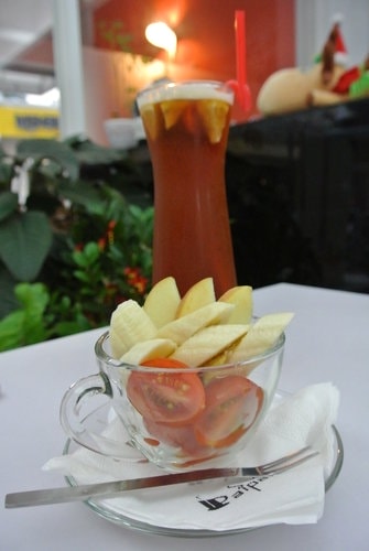 比較特別的是,除了水果茶之外還附上一小杯的水果拼盤喔