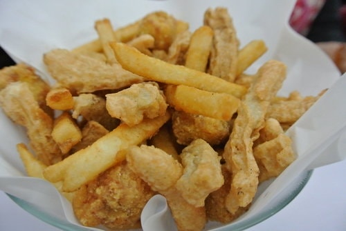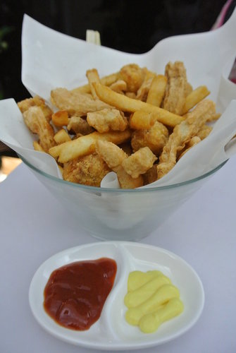 炸物三種NT$100,有薯條+甜不辣+雞米花