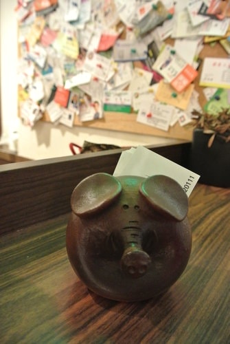 可愛的大象,它的可能是放拉麵吧的名片喔