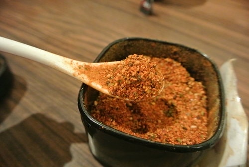 七味粉~~裡面有:辣椒粉、陳皮、芝麻粉、青海苔粉、胡麻粉、芥茉粉、山椒粉