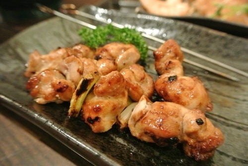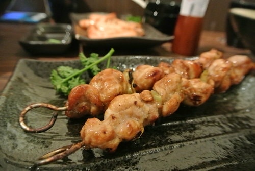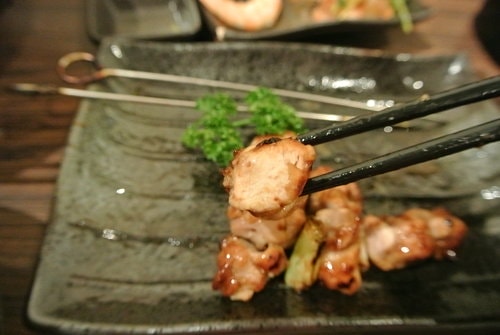 雞腿肉串還有鐵棒穿著,一般串燒只簡單用竹籤串著而已~~