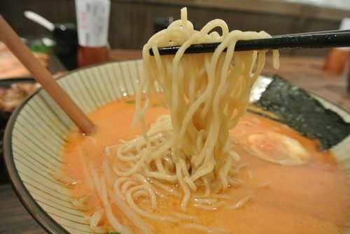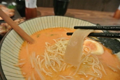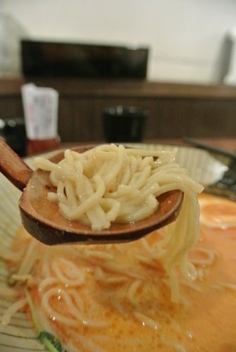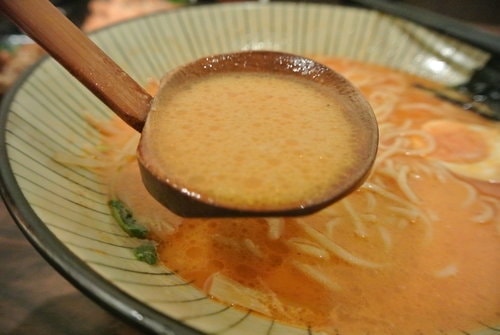 地獄拉麵的湯頭也好濃郁喔,不同於豚骨的湯頭因為加了辣的口感