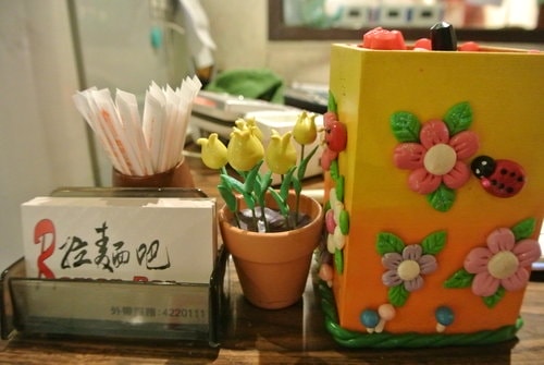 結帳時,看到筆筒外面裝飾的很可愛,還有鬱金香的小盆栽