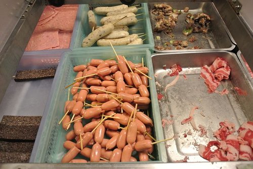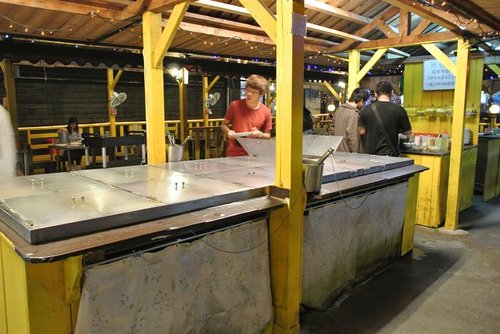 食材區,左邊那鐵桌上的鐵盤就是裝蛤蜊的,白色的冷凍櫃就是裝冰淇淋嘍