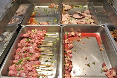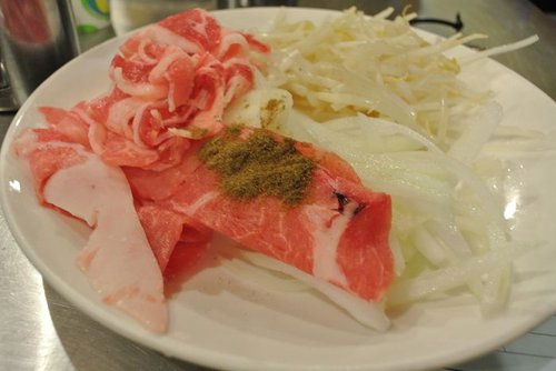 肉片上灑的是孜然香料,原本我以為是胡椒粉壘