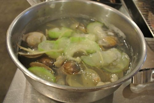 加絲瓜、薑絲及些許鹽巴、米酒一塊煮