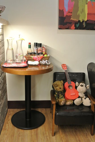 一開始我以為是客人的〞包包〞,因為剛進來時有兩大桌的客人