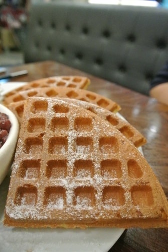 鬆餅看起來就很酥脆吧,上頭還灑了些糖粉