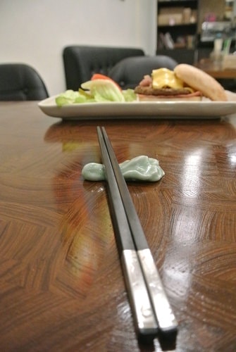 吃烏龍麵的筷子,筷架還是一棵白菜的造型喔