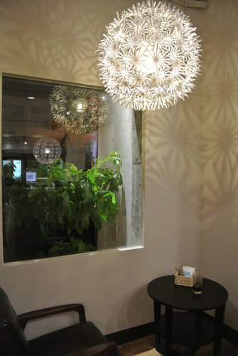 那沙發看起來就很舒服吧~~上面還有一個造型很特別的吊燈