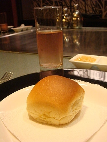 奶油餐包,後面是氣泡酒