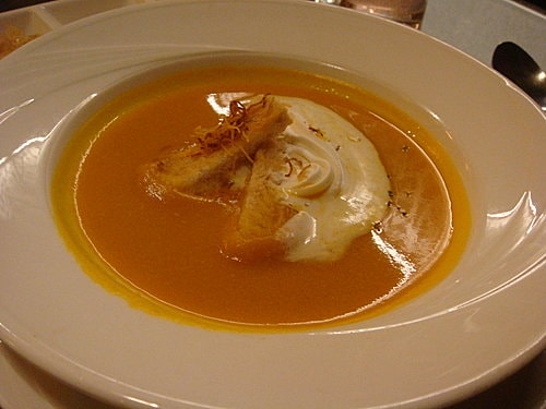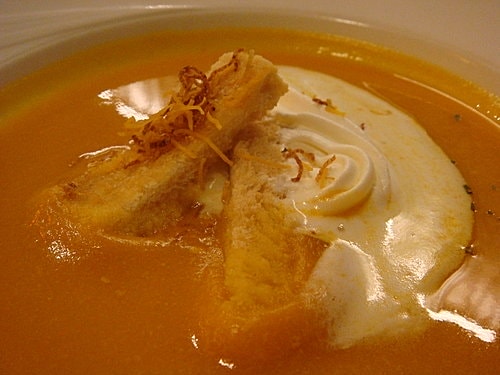 南瓜濃湯上加了麵包跟鮮奶油