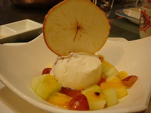 各式水果丁配上一球冰淇淋