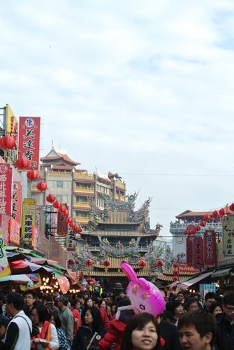 天后宮旁的街道人山人海,人擠人,只能用小碎步在走路