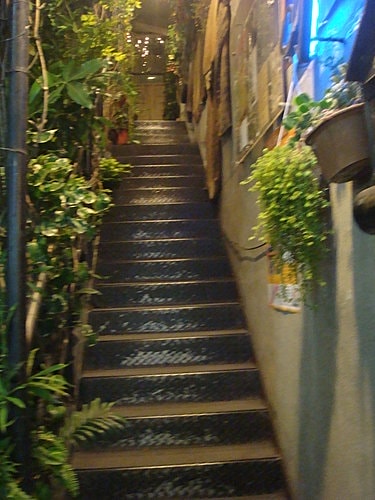 咖啡廳位於二樓,順著這個樓梯走上去就可以看到店家的門口了