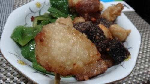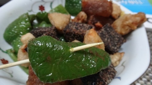 青椒、芋仔粿、豬血糕、杏鮑菇