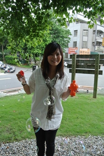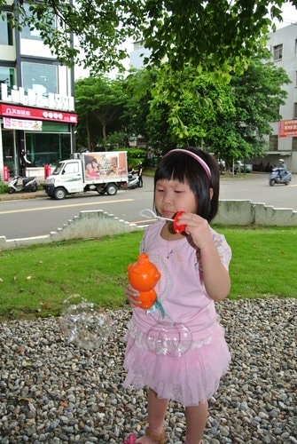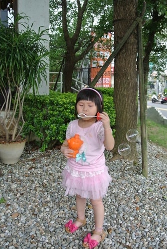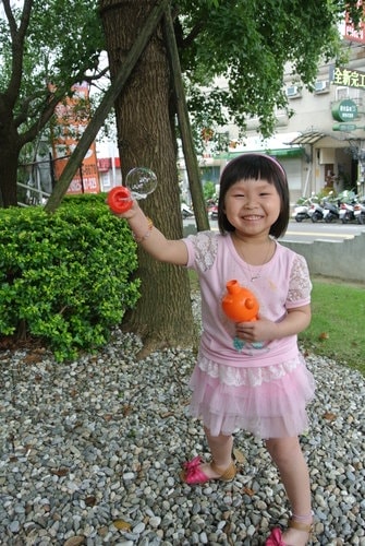 所以我們就陪著萱在外面吹泡泡(其實我也有玩啦)
