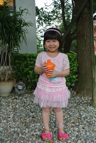 萱屁股坐不住了,一直吵著要出去玩他的新玩具…….吹泡泡
