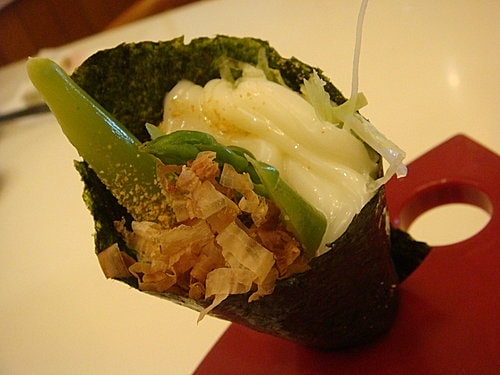 特別交代沙拉要多一點喔,它們家的手捲有加花生粉跟柴魚片所以吃起來特別香