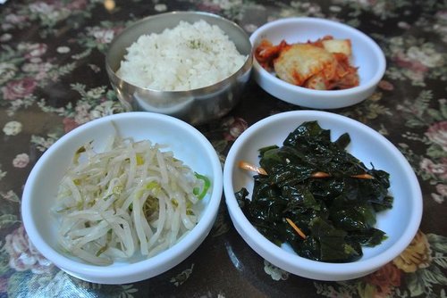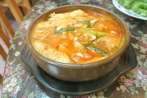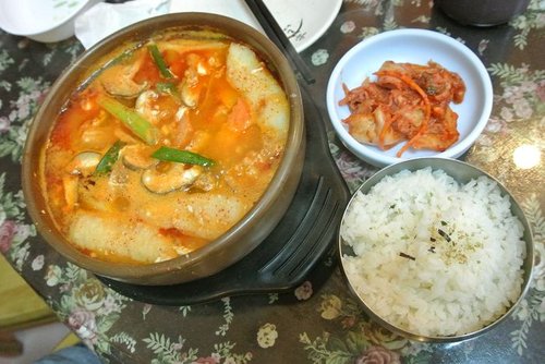 除了一鍋豆腐湯,再附上一碗白飯及一碟韓式泡菜