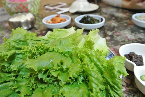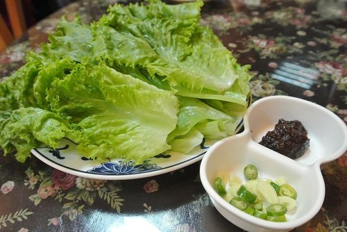 但仔細看生菜顏色較深的地方(帶紫色部份)就有像韓劇裡看到的生菜
