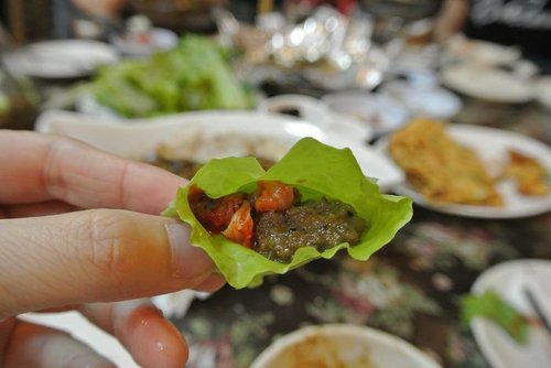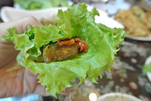 用店家所說正統的韓國生菜包來吃味道也不錯
