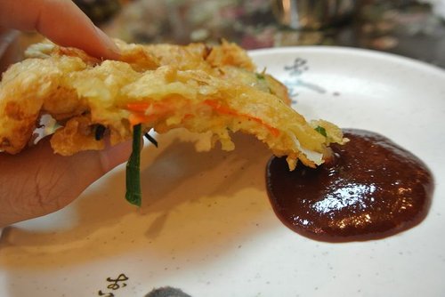 我則沾辣椒醬一起吃,辣味剛好綜合掉油膩的感覺