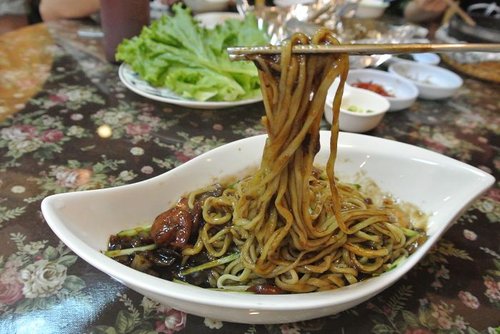 店員說,這是正統的韓國酢醬麵,醬汁部份也都是韓國進來的喔