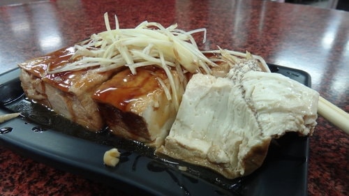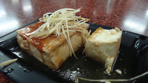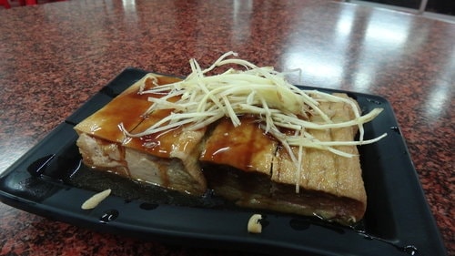 份量是兩大塊油豆腐,上頭淋上油膏及配上嫩薑絲