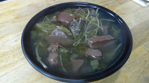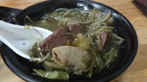 豬血湯除了豬血還有腸子及很多的薑絲及酸菜,湯頭很不錯