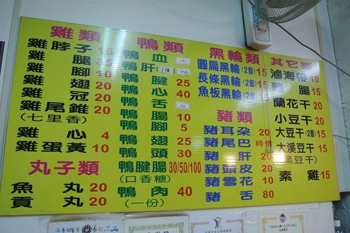 101.11.17 下雨的高雄夜晚,去哪都會弄的溼答答的 所以我們決定在飯店附近覓食,買些東西回去飯店內享用 而且也才吃完晚餐,肚子也不是很餓 走著走著,看到這家滷味攤,是下酒的好菜 試吃後,也覺得〞氣味〞的確不錯,阿姨說要買給我們吃 牆上的價目表 各種種類的滷味 …