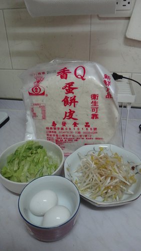 101.11.10 天氣晴朗、美好的禮拜六,我又難逃加班的命運 下午做的很不順,跟張姐兩人都做的好累 本想下班回家好好休息的 剛好託同事買的蔥抓餅及蛋餅皮買來了 下班時去黃昏市場買了豆芽菜及結球萵苣本想在家做蔬菜蛋餅的 得知小妹人在大妹家,於是一回到家立馬把東西放…