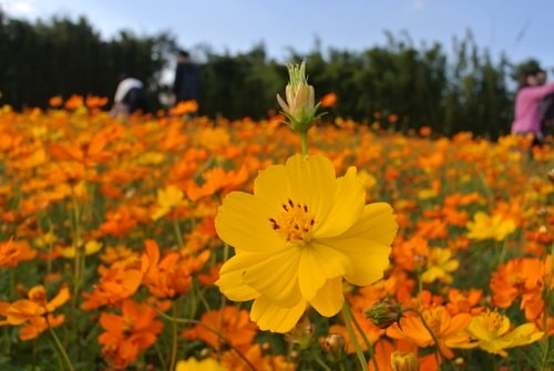 101.11.03 禮拜六的早上跟朋友、大妹去costco購物 回來往中壢方向(要陪大妹帶小孩去看皮膚科) 經過金陵路時看到好幾片花海 在車上的我們(查某郎)都發出讚嘆的聲音 最後…昀姐終於開口了〞要不要停下來拍丫〞 二話不說,馬上將車子停在路邊下車拍照去 一整片橘…