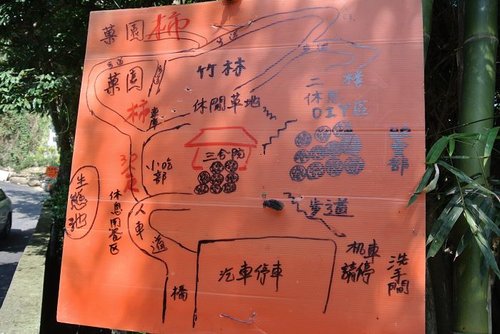 101.10.24 拍完金漢柿餅,往回程的方向走會經過味衛佳,也是我們今天的目的地 將車子停在下方的停車場,因為昀姐交代不要開上去 也有一位好心的遊客建議我們不要開上去,當做運動用走路的上去 手繪的地理位置圖 味衛佳~~旁邊的石頭也被彩繪成柿子了 再往上走….就…