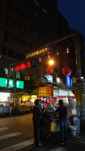2012.04.04 肚子很餓的我們,下了山阿中帶我們來環球購物中心吃〞午餐〞(已經是下午三四點嘍) 我們簡單吃了雪嶽山韓式料理 當然還喝了我朝思暮想的50嵐〞榛果混珠奶茶〞 為什麼說我們〞簡單吃了….〞,因為我們要留肚子給樂華夜市啦 在環球購物中心閒逛了一下後…