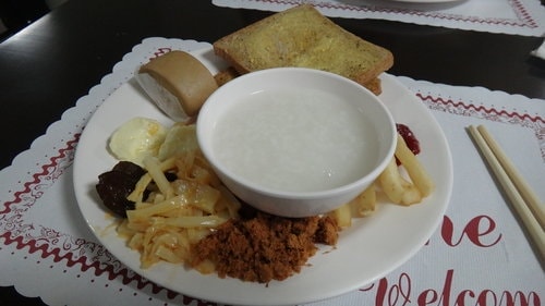 100.11.20員工旅遊第二天 一早起床梳妝打扮完,帶著惺忪的睡眼至飯店B1享用早餐 採用自助式的中西式合併早餐 烤了奶油吐司、黑糖小饅頭、夾了幾根薯條 再盛了一碗稀飯,簡單夾了一些小菜:肉鬆、脆瓜、蒸蛋、筍子 吃完第一…