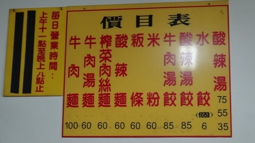 100.10.18 這家原味牛肉麵是瓊尹同學介紹的 第一次去找不到此家店 後來問了問瓊尹同學,她很熱心的幫我查了店家的地址及電話 這天~~趁著到天成看醫生的同時,順便再來去這家麵店品嚐一下 價目表 牛肉湯麵及牛…
