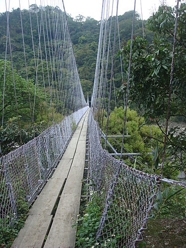 100.04.05 角板山也是離家不遠的點,但也好久好久沒來了 發現變化好大、好多都變的不一樣了 跟之前來的印象完全連不上 而且不曉得是不是因為今天是清明節大家都忙掃墓 感覺人潮不是這麼的多 順著指標來到吊橋 下來時走的很高興(因為都是下坡) 但心裡面其實正在忐忑R…