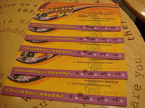 99.06.26 第廿一屆金曲獎頒獎典禮對我們來說真的是….. 一開始說沒有辦法拿到入場門票 一下子又這個可以進行索票、一下子又那個可以進行索票(但結果都沒得到) 就在心裡打定沒辦法參與這次的典禮之際 突然又聽婕希說,把6/26這天的時間空下來,應該是有門票可以…