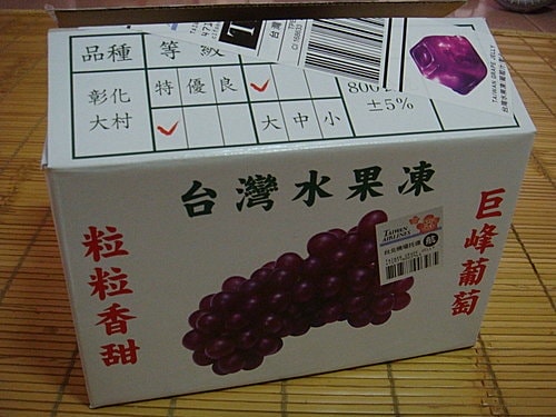 還記得我之前介紹過的水果軟糖嗎?? 繼那之後又發現了新玩意。。。。水果果凍(小妹買回來的) 之前的水果軟糖是做成水果箱 這次是做成航空空運的水果 乍看之下真的好像是空運的水果 這次是巨峰葡萄口味的 還有華航機場托運單 連這也有,真的是模…