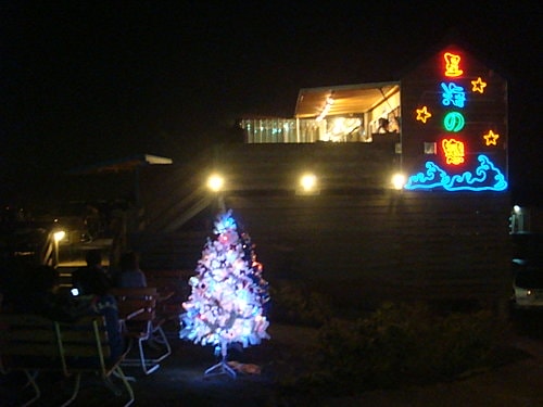 結束公司一日旅遊的行程時間還有點早 所以在之前我們就說好回來後要去〞星海之戀〞看夜景 到達時大約八點多,發現滿滿的人 幾乎找不到座位 剛好有人要離開我們才有位子可以坐 不過~~今天晚上好像開始變天,有點冷 之前是白天來的還沒有看這塊招牌 晚上點上燈光…