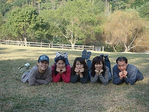 下一站~~~來到苗栗的飛牛牧場 看到這一大片草地,一定要來拍個照嘍 想想要擺什麼姿勢好??就這樣吧~~ 請各位同仁配合我的 ”id兒” 但因為找不到路人,相公自告奮勇要幫我們拍 我想是因為他不想拍照吧~~ 左起:政宏、愛美、素梅、me、煉哥 一大片草地配上後…