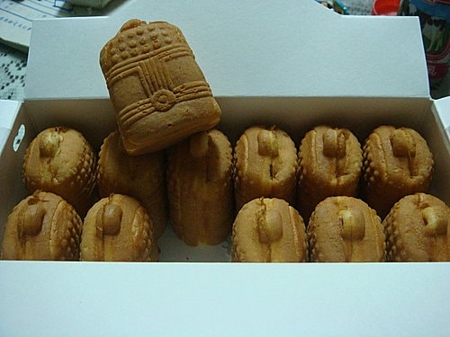 97-7-31(四)從高雄回來的路上都沒有買到什麼名產所以在清水休息站時買了一直很想吃的〞釣鐘燒〞雖然不是假日還是有不少人在排隊一盒有12個,100元,是奶油口味的我是回到家冷了才吃,所以覺得普普通通但奶油的確比一般的還香 我在想這種東西還是要熱熱吃才好吃不過真的…