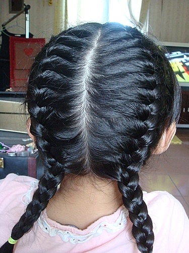 每到假日放假小姑的女兒就會回來只要她回來就常常會要求我幫她綁辮子而且他都綁不膩喔綁來綁去就是這種辮子只是有時是綁半頭、有時整頭綁(很大很圓的一顆頭吧~~) 正面照這就是那幅小朋友的畫的〞作者〞每次上來我房間都很有主見的跟我說明要綁半頭還是整頭綁連橡皮筋…