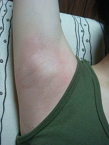 夏天的腳步到了、天氣越來越炎熱衣櫥裡的無袖、背心、細肩帶都紛紛要出籠了所以我也要趕緊做些準備動作首先~~我就先來〞拔〞個腋毛吧沒想到拔毛的隔天…奇癢無比才發現整個出現紅腫、而且面積也擴大了前至胸部、後至背部…..慘慘慘偏偏禮拜天又沒有醫生看診…