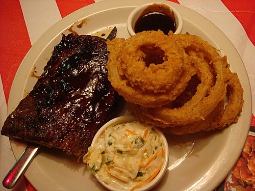 這天跟爸媽、大妹去大江逛街 順便去找我同學買衣服 結果我同學還沒來,我們就想說先去吃個午餐 後來媽媽說很久沒吃 Friday's了 所以我們就決定去吃Friday's 豬肋排(半份) 旁邊是洋蔥圈,一開始我們都以為是魷魚(呵呵呵) 後來爸爸吃了之後才知道原來是洋蔥圈 雞…