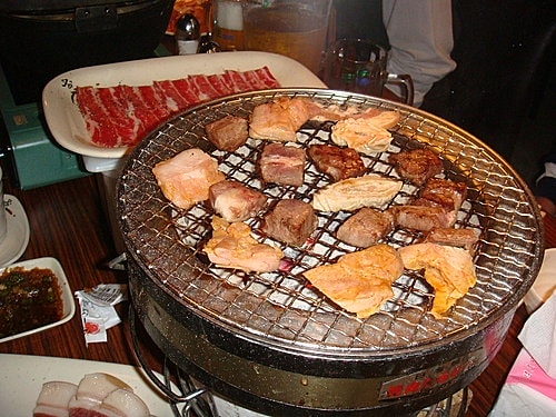 星期六的晚上我們約好要去韓一館吃飯 這是牛肉跟豬肉 可能是有醃製過的關係,肉吃起來很有嫩、很有味道 一開始我一直狂吃很多肉 因為有同事不吃羊肉所以我沒有吃到羊肉 還有雞肉跟雞柳條,吃起來都很嫩(因為很好吃只顧著吃都沒拍到照片) 尤其是雞柳條帶點辣味~~挺好…