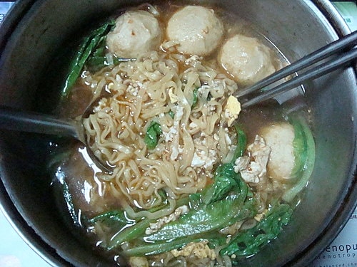 今天晚上加班時 肚子很餓,再加上天氣冷冷的 就好想要吃火鍋、喝碗熱熱的湯喔 但加班加到八點,再去吃個宵夜回來就滿晚了(昨晚又失眠沒睡好) 所以還是忍住了不出去吃火鍋了 回到家文幫我煮了宵夜 統一葱燒牛肉麵+竹圍漁港買的丸子+自己家種的義大利A菜+雞蛋 哇~~~很好…