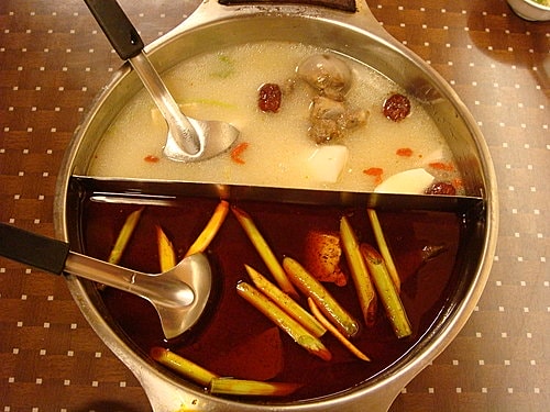 今天晚上準備睡覺時看著電視偶像劇〞美味關係〞 看著電視裡煮著美食 肚子就不自覺的咕嚕咕嚕起來 於是我跟文起身換好衣服直奔〞梁記麻辣火鍋〞祭五臟廟(有點瘋狂) 這是中壢地區我覺得麻辣湯頭最好的一家店 尤其是它的鴨血….深獲好評!! 鴛鴦鍋(上面是鈣骨鍋、…