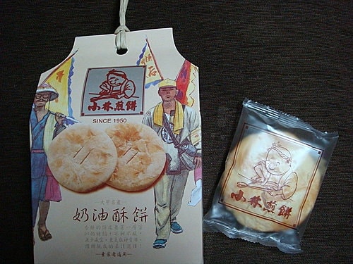那天弟弟下去台中玩, 回來時買了一個名產給我….小林煎餅的奶油酥餅 哈哈~~我以為小林煎餅只有煎餅,不知道他還有奶油酥餅 包裝包得還不錯,但是裡面只有4塊奶油酥餅 我有吃了一塊…..覺得…..還是太陽餅比較好吃 因為它外面那層稍微厚了一點、也有點…